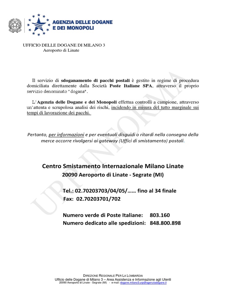 Partito dal centro scambi internazionaleposte italiane milano gateway poste italiane.